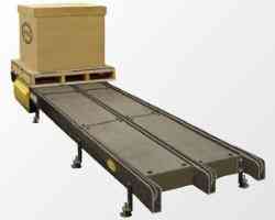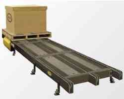 The model DC-82 is a two-strand drag chain conveyor designed to handle pallets. Capacity: 5800 lbs. maximum load at 30 FPM.