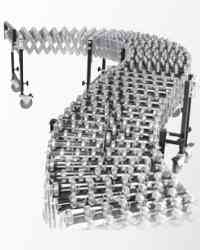 A proven performer for trailer loading and unloading. Ideally suited for packaging, shipping, and flexible assembly lines. Order optional leg connect brackets to lock units together. Shown with optional floor supports.